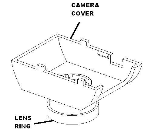 Install camera cable into camera. Bend top of cable and thread into slot in rotation mount. Install tilt arm into rotation mount by gently spreading the pivot arms to engage the pin into the arms.