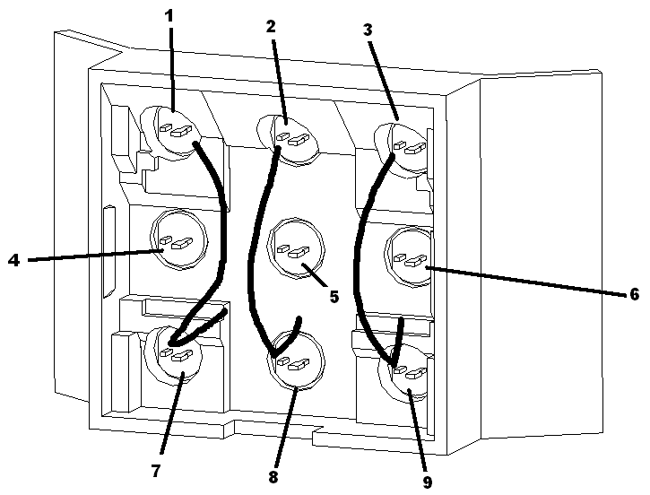 Glue LED in the following locations: white in 1, 7, 2, 8, 3, 9. Install blue in 4, green in 5, and red in 6.
