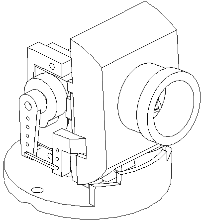 Power up the rotation servo, set to 90 degrees. Install horn and rod with camera point down to lowest point.