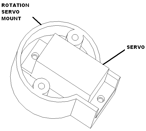 Power up the rotation servo, set to 90 degrees. Install to the rotation mount as shown.