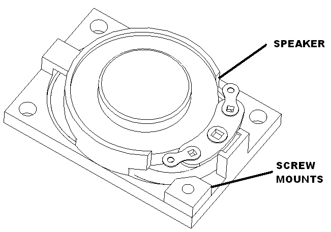 Glue screw mounts to speakers as shown. Set aside to dry.