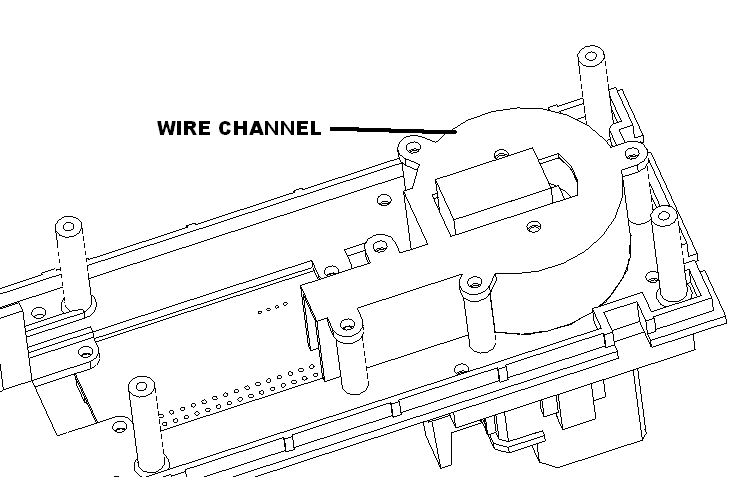 Place the wire channel over this carfully routing the cable into the channel. Attach rotation assembly to the wire channel with two M2.3 X 8 screws. Then attach the wire channel to the chassis. Be careful not to damage the camera man.